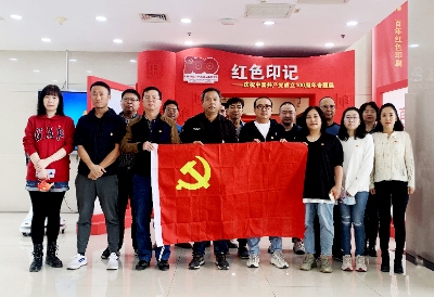 上海中华印刷博物馆位于青浦区汇金路889号,馆内“红色印记”专题展展现了从中国共产党第一次代表大会前的马克思主义传播,到上世纪二十年代无数的红色秘密印刷所;从上海到井冈山,从瑞金到延安,从西柏坡到北京;从革命党到执政党,一代又一代的印刷人始终追随党的足迹,用印刷传播革命真理,用印刷弘扬精神文化,用印刷装点美好生活。在解说员的带领下,党员们先后参观了“信仰的力量”“永远跟党走”“掀开新篇章”“迈向新时代”等展厅。