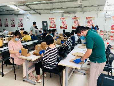 随着中秋节的到来,一直深受消费者青睐的爱森鲜肉月饼销量大增、供不应求。为迎接月饼生产高峰,9月7日上午,由上海爱森党员、积极分子、工会职工、团员青年组成的 “临时支援队”,在河间路总部一楼参与折叠中秋节月饼礼盒的活动,大家有条不紊地进行流水线操作,构成一派火热朝天的忙碌景象。人心齐,泰山移。不到1小时,所有月饼礼盒就折叠完成,整齐堆放在一楼食堂。