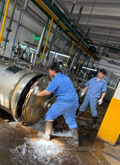 梅林有限杀菌工段、空罐车间、铲车等高温岗位,工作环境的高温给员工带来不适,尤其是杀菌工段体感温度达到40度以上,蒸腾的锅炉不断给狭小的空间加温;铲车司机也始终在烈日暴晒下穿梭,每当铲车一点火运行起来,整个人就像在烤箱里烘烤一样。但他们无畏炙热,坚守岗位,值得所有员工敬佩。