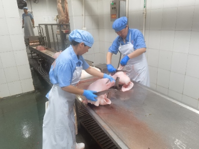 上海爱森加工厂冷鲜肉加工车间充分响应“深耕产业链 发展新引擎”大讨论党建主题实践活动,组织相关管理、技术人员通过“走”出去“取”回来的方式,不断学习创新、转变固有思路,借鉴同行业先进经验,实现猪舌加工工艺流程的升级改进,有效消除安全隐患,提升产品品质和工作效益。