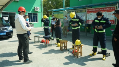 培训过程中,安全办公室相关培训人员对防护服的作用、着装要求和穿戴的方法步骤进行了细致讲解,最后对每一名义务应急队成员进行防护服穿戴考核,合格率达到90%。