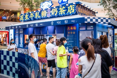 2020年7月31日至9月16日,大白兔品牌旗下又一怀旧老品牌产品百花牌花生牛轧糖,也带来了一次极具创新的尝试,在上海LuOne凯德晶萃广场L3中庭开设一家花生牛轧糖衍生品快闪店。更值得一提的是,此次百花牌花生牛轧糖也在消费者的呼声中,联合快乐柠檬品牌推出了花生牛轧糖风味奶茶店。