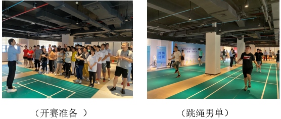 参赛选手在相应场地分别进行为时60秒男、女个人跳、花式接力跳和90秒男、女个人踢毽子三项比赛。